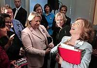 She spoke to a Bellevue crowd of about 60 people yesterday, many of them nurses and public-health workers, before attending a women's rally in Seattle.