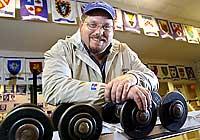 Hadley figures it takes about four to five hours to research and produce each crest. Hadley tries to finish a team's set by the following spring. He insists he's not artistic.