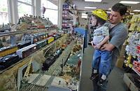 Popular with youngsters is the store's "Thomas the Tank Engine" display featuring that iconic big-eyed engine. Human-powered trains on wood tracks lure kids to play, and they do, for hours if allowed.