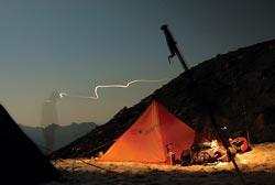 As they retreated in the dark it began to snow, and the velocity of the wind increased. By 8 p.m. Giutashvili collapsed. Mazur tried to carry him, and when he was no longer able, gave him his oxygen, dug a snow hole, placed him inside and began hiking down the mountain toward faint lights in the distance. His headlamp was out. The wind sandblasted his bare cheeks. When, several hours later, he stumbled inside the tent of his Russian teammates, he told them that Giutashvili needed help. One teammate went to find him, but came back alone.