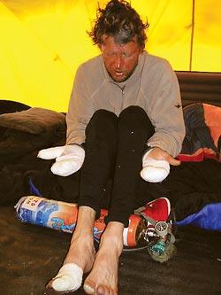 Mazur also had a close call, having developed brain swelling — common at high altitudes — while climbing on Mustagh-Aha in 2000. While in a confused state, he fell headfirst down a vertical slope but miraculously was not hurt. In 1996, Mazur had to self-amputate the tip of a toe to prevent the spread of gangrene after it was severely frostbitten in a 23-hour climb to the Lhotse Summit, Everest's neighbor and the fourth-highest mountain on Earth.