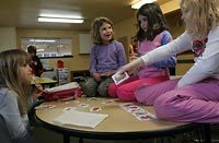 The computer room stays busy all day. Many younger students run around outside. The teenagers spend much of their day in the "quiet" room, which doubles as the school's office. They play a board game called Apples to Apples. They talk. They draw. In the afternoon, a few walk down to the nearby gas station to buy snacks.