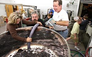 Deane Seeger, 55, is a student at the other end of the age spectrum, studying winemaking at South Seattle Community College. Last week, he helped dump cabernet sauvignon grapes into a hopper that removes the stems.