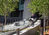 Jeff Sullivan, the chief of the criminal division in the U.S. Attorney's Office, was getting off the elevators on the fourth floor of the courthouse when he saw the man, surrounded by armed officers, backed up against the glass wall at the west end of the courthouse foyer. Sullivan said the man was on the secure side of the reflecting pond, not far from the elevators that would have given him access to the rest of the courthouse.